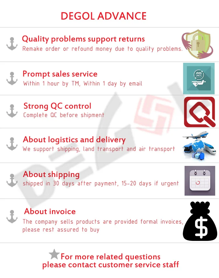 1)Garantizamos la calidad, si los productos tienen algún problema después de la entrega a su país, nos gustaría resolverlo.